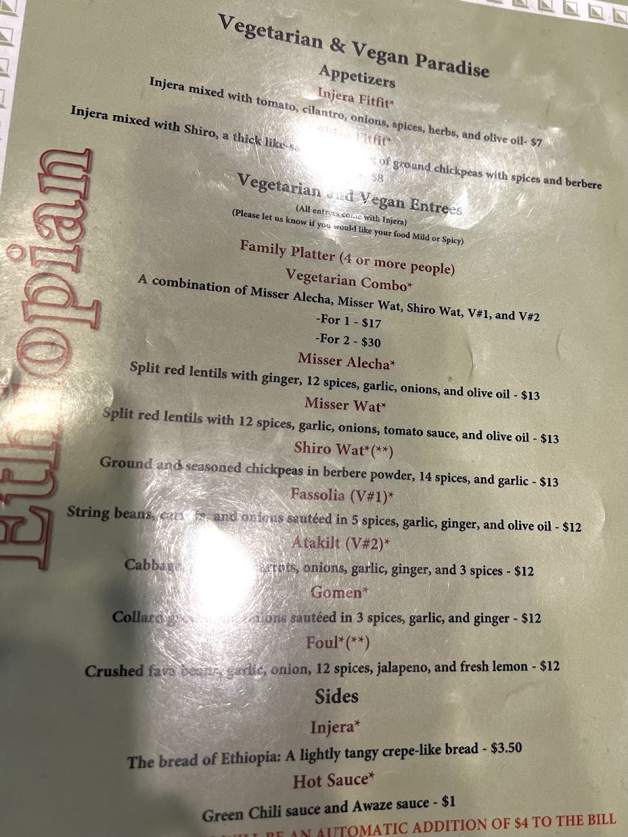 Start your journey with a hearty entrée—a marinated lamb or chicken served on aromatic basmati rice, each infused with a harmonious blend of 12 spices. For vegetarian and vegan diners, the Family Platter offers a delightful combination of dishes featuring the rich, earthy flavors of misser alecha and shiro wat.